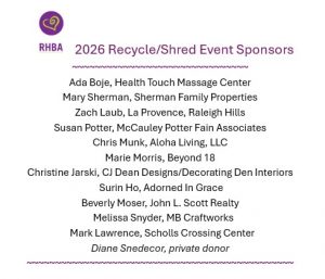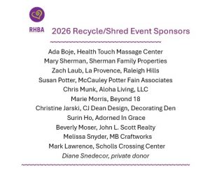 RHBA (pronounced Ree-ba) is active in our community in projects where you can help with donations to the projects such as the School Supply Drive, the Shop With A Cop with Washington County Sheriff's Office and Beaverton School District, and our annual Shred and Recycling Event!